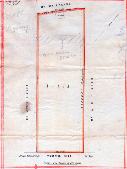 The same abstract of title that provides all that information also records a pre-contract agreement for Rose to sell the Milton Road frontage (all the land of numbers 95 to 99 and the dental surgery) to William Pushee Hollis of Chesterton Road, Councillor for North Chesterton. Numbers 97 and 99 Milton Road were built by 1913 and 95 some time later. Rose retained the right of access to the mill and slaughterhouse via the lane on the north-east boundary of this plot. This right would have been established when Clayton Way was stopped up in 1839.